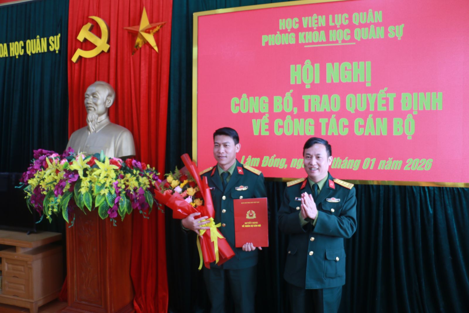 Sáng ngày 05/01/2026, tại Học viện Lục quân, Phòng Khoa học quân sự đã tổ chức Hội nghị công bố, trao quyết định về công tác cán bộ theo Quyết định số 2595/QĐ-HVLQ ngày 29/12/2025 của Chính ủy Học viện Lục quân.