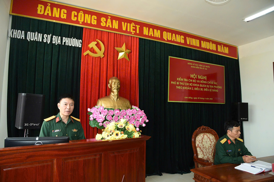Đoàn Kiểm tra số 166 của Đảng ủy Học viện Lục quân kiểm tra Chi bộ Khoa Quân sự địa phương theo Khoản 2, Điều 30, Điều lệ đảng