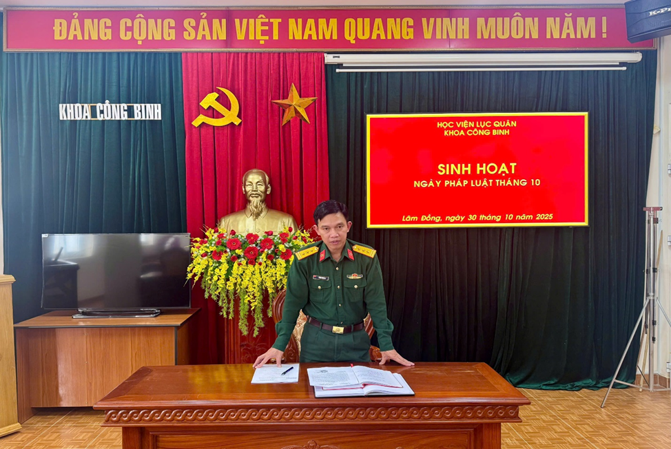 Trong quá trình xây dựng Quân đội nhân dân Việt Nam cách mạng, chính quy, tinh nhuệ, từng bước hiện đại, việc tăng cường giáo dục, nâng cao nhận thức và ý thức chấp hành pháp luật, kỷ luật Quân đội cho quân nhân trong đơn vị là nhiệm vụ có ý nghĩa đặc biệt quan trọng. Nhận thức rõ điều đó, Khoa Công binh - Học viện Lục quân luôn coi trọng công tác phổ biến, giáo dục pháp luật, trong đó việc duy trì sinh hoạt Ngày Pháp luật vào thứ Năm tuần cuối tháng trở thành một hoạt động nền nếp, thiết thực và hiệu quả.