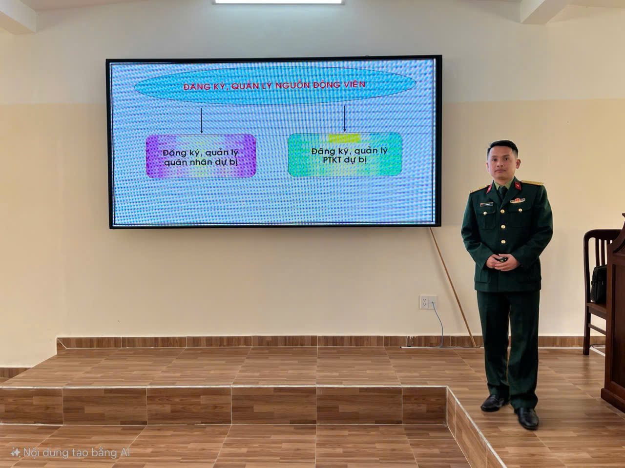 Thực hiện Kế hoạch đào tạo năm học 2025, ngày 04 tháng 12 năm 2025, giảng viên Thiếu tá Lê Tiến Mỹ, Bộ môn Động viên quân đội, Khoa Quân sự địa phương, đã thực hiện giờ giảng đầu tiên bài “Tạo nguồn, đăng ký, quản lý nguồn động viên” cho đối tượng T75/11–15, Kế hoạch huấn luyện học kỳ I năm học 2025 -2026, theo kế hoạch công tác của Khoa, ngày 04 tháng 12 năm 2025 .