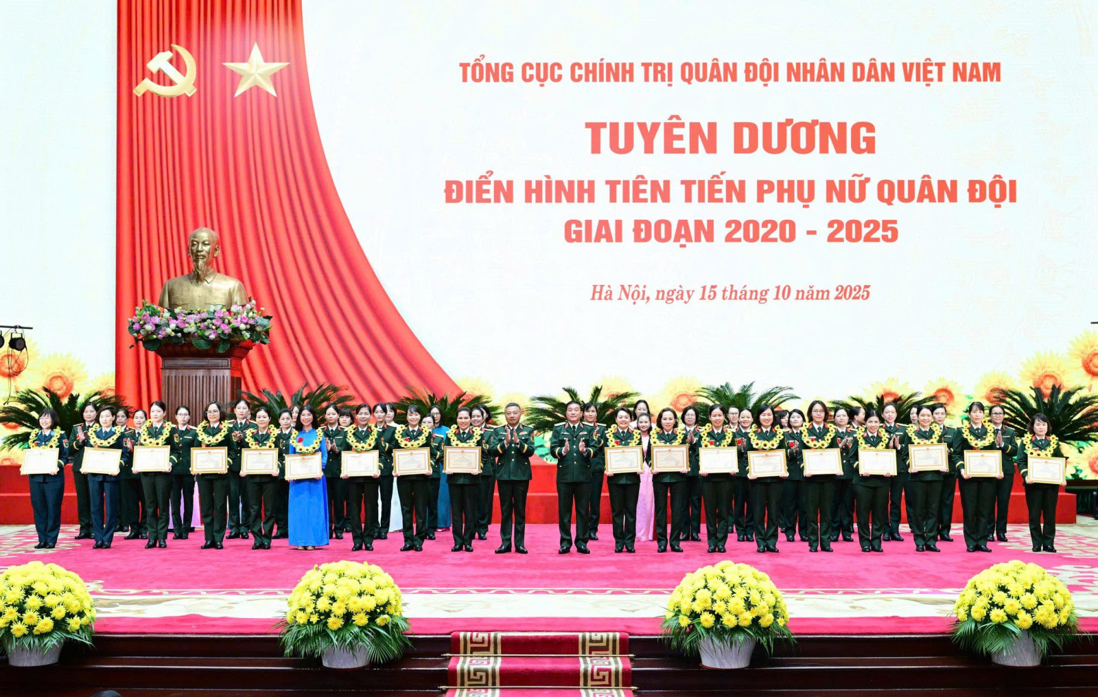 Chiều 15/10, tại Hà Nội, Tổng cục Chính trị Quân đội nhân dân Việt Nam tổ chức tuyên dương điển hình tiên tiến phụ nữ Quân đội giai đoạn 2020 - 2025.