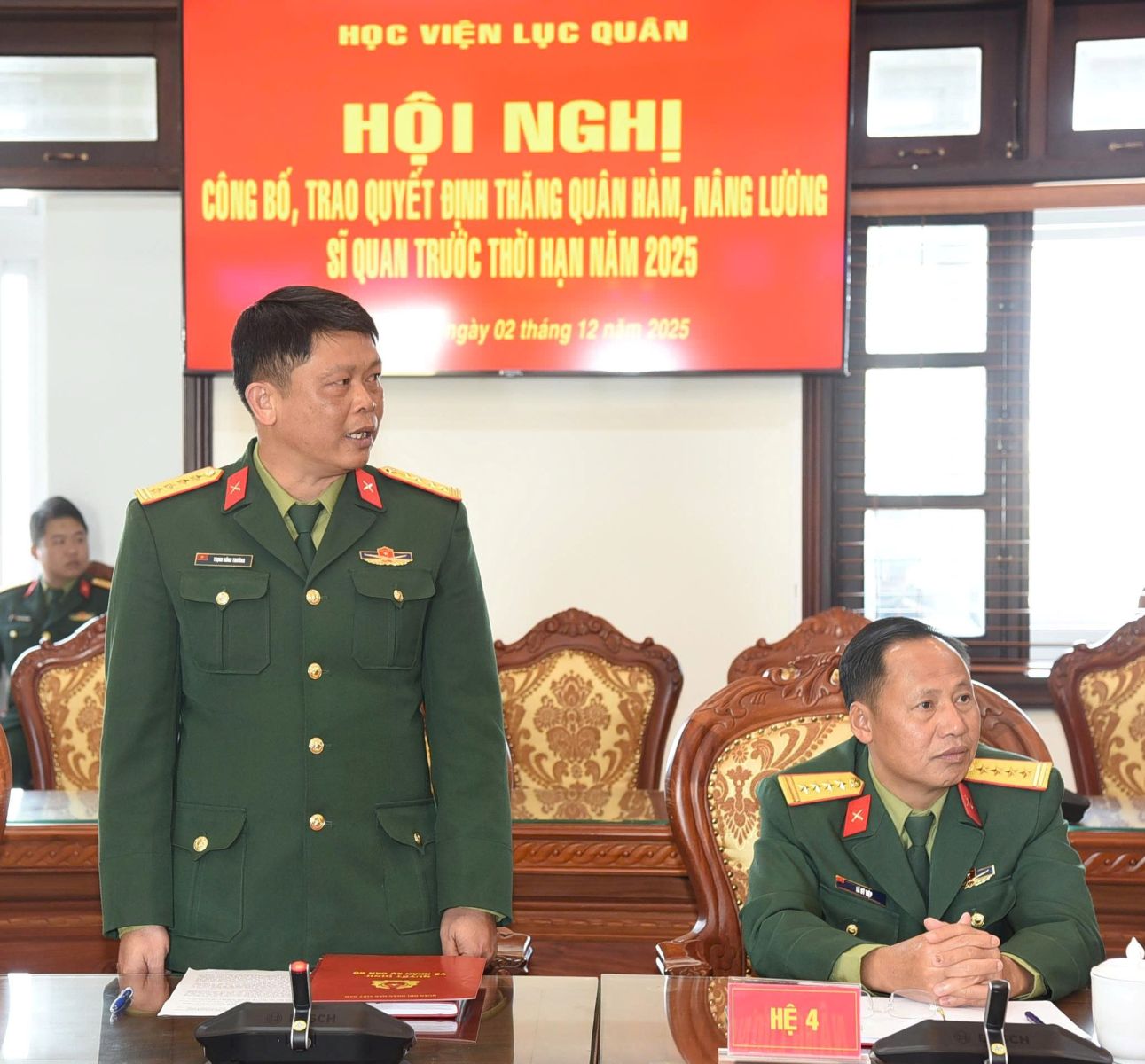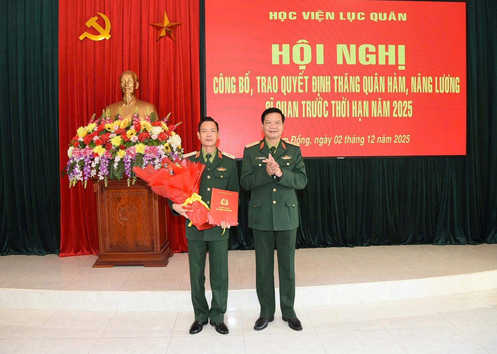 Học viện Lục quân tổ chức Hội nghị công bố, trao quyết dịnh thăng quân hàm, nâng lương sĩ quan trước thời hạn năm 2025