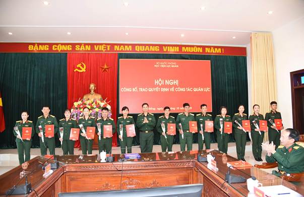 Trong đợt này, Ban Thường vụ Đảng ủy Học viện đã đề nghị Bộ Quốc phòng xem xét ra Quyết định về việc thưởng thăng quân hàm, nâng bậc lương, hệ số bảo lưu đối với 21 đồng chí, trong đó thưởng thăng quân hàm 14 đồng chí, nâng bậc lương 05 đồng chí, hệ số bảo lưu 02 đồng chí và điều động đối với 07 đồng chí.