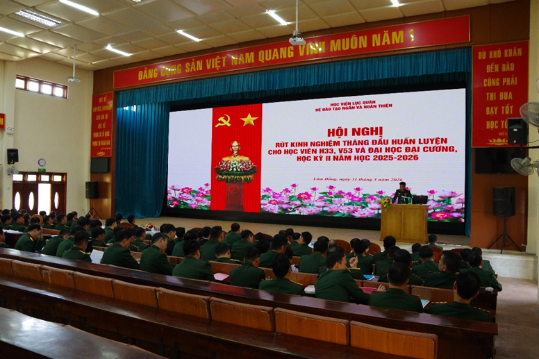 Chiều 31/3/2026, Học viện Lục quân tổ chức Hội nghị rút kinh nghiệm tháng đầu huấn luyện học kỳ II năm học 2025–2026 cho học viên các khóa H33, V53 và Đại học đại cương. Hội nghị nhằm đánh giá toàn diện kết quả bước đầu, rút ra bài học kinh nghiệm và đề ra giải pháp nâng cao chất lượng giáo dục, đào tạo trong thời gian tới.