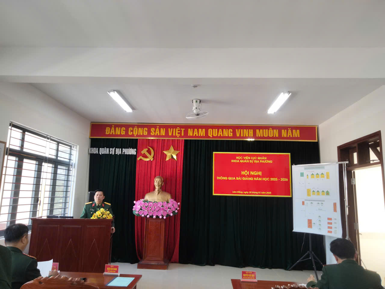Quán triệt chỉ thị của Giám đốc Học viện về việc dự giảng, bình giảng đối với các khoa giảng viên. Thực hiện Kế hoạch số 05/KH-ĐT ngày 05/01/2026 của Phòng Đào tạo về kiểm tra, dự thông qua bài giảng, lên lớp, tập bài các khoa giảng viên tháng 01 năm 2026. Tiết 7 - 9, ngày 16/01/2026, Học viện đã tổ chức kiểm tra, dự giờ giảng bài đối với đồng chí Trung tá Lê Thanh Phương, Giảng viên Bộ môn Động viên quân đội, Khoa Quân sự địa phương, trong giảng dạy cho học viên khối T75.