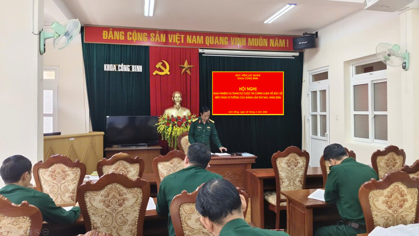 Trong bối cảnh nhiệm vụ xây dựng và bảo vệ Tổ quốc đặt ra những yêu cầu ngày càng cao, công tác bảo vệ nền tảng tư tưởng của Đảng tiếp tục giữ vai trò then chốt, là “lá chắn” vững chắc trên mặt trận tư tưởng - lý luận. Nhận thức sâu sắc ý nghĩa, tầm quan trọng đó, chỉ huy Khoa Công binh đã tổ chức quán triệt, triển khai nghiêm túc việc tham gia Cuộc thi chính luận bảo vệ nền tảng tư tưởng của Đảng lần thứ sáu năm 2026, coi đây là nhiệm vụ chính trị quan trọng gắn liền với chức năng đào tạo, nghiên cứu khoa học và xây dựng đội ngũ cán bộ, giảng viên của khoa.