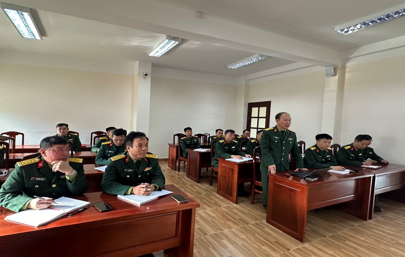 Đồng chí Đại tá Đỗ Hữu Long, Chủ nhiệm Khoa Hậu cần - Kỹ thuật quán triệt mục đích, yêu cầu của buổi tập huấn