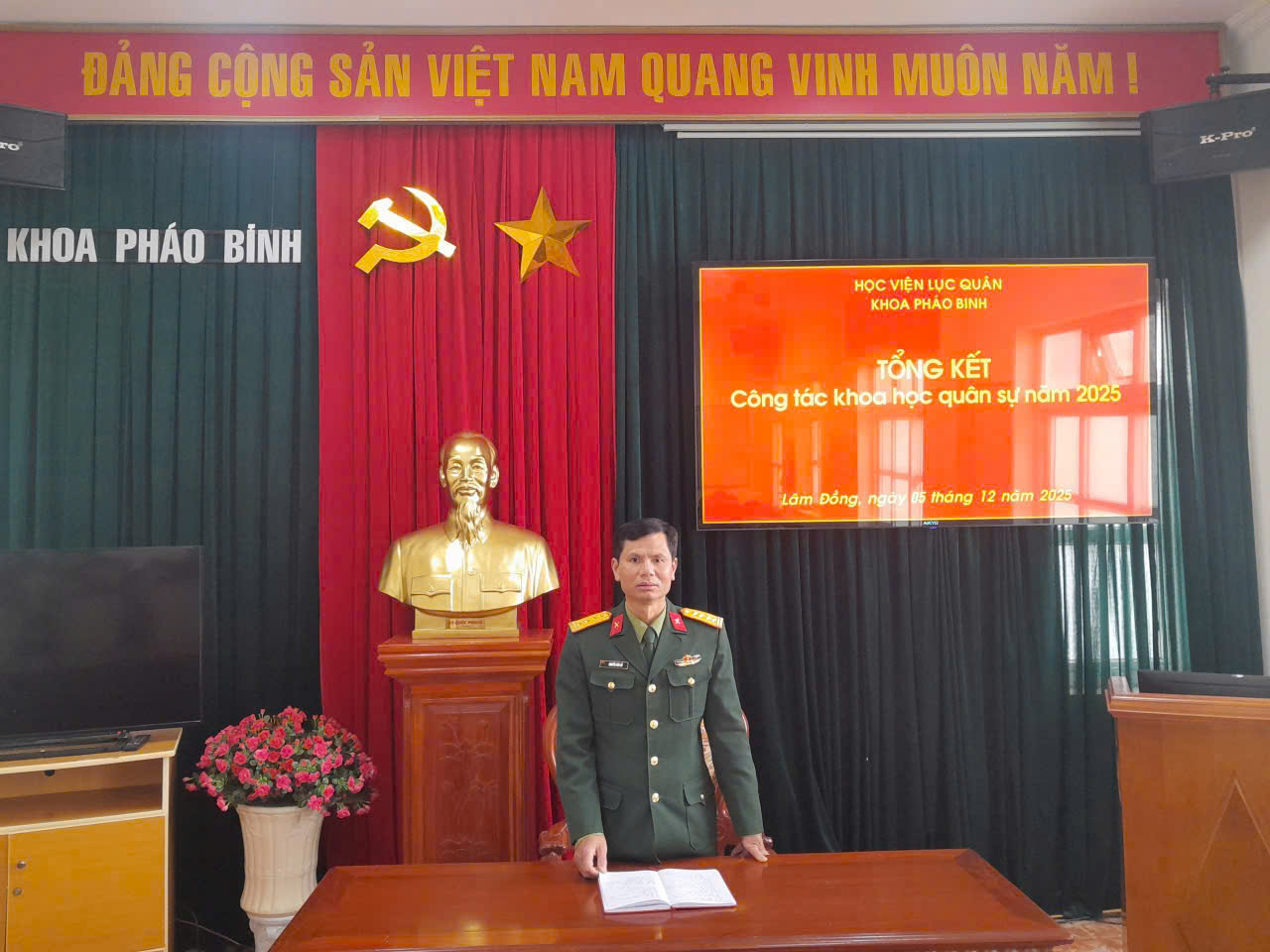 Do có sự lãnh đạo sát, đúng của cấp ủy, chi bộ; sự chỉ đạo chặt chẽ, kiên quyết của chỉ huy Khoa, các bộ môn; hoạt động trách nhiệm, hiệu quả của Tổ Khoa học; sự đoàn kết, nhất trí, quyết tâm cao của tập thể cán bộ, giảng viên. Khoa Pháo binh đã hoàn thành xuất sắc công tác Khoa học quân sự năm 2025: tham gia biên soạn 01 đề tài cấp Bộ Quốc phòng; chủ biên 02 đề tài cấp Học viện, 02 tài liệu cấp Bộ, 03 giáo trình cấp ngành; 02 tài liệu, 01 chuyên đề cấp Học viện; 01 tài liệu, 05 chuyên đề cấp Khoa; 05 bài giảng điện tử, 18 chiến lệ. Đăng 13 bài báo khoa học trên các tạp chí trong và ngoài Học viện; 33 tin, bài trên Trang Thông tin điện tử và phát thanh Học viện; tham gia tổ nội dung viết kịch bản và đóng 02 bộ phim huấn luyện, xây dựng 03 video clip về huấn luyện chuyên ngành pháo binh. Phối, kết hợp chặt chẽ với cơ quan, đơn vị pháo binh quân khu, quân đoàn, Quân chủng Hải quân, Bộ Tư lệnh Thủ đô Hà Nội, Bộ Tư lệnh Pháo binh - Tên lửa trao đổi thông tin, kinh nghiệm huấn luyện góp phần thực hiện tốt phương châm “Chất lượng đào tạo của nhà trường là khả năng sẵn sàng chiến đấu của đơn vị”. Làm tốt công tác giữ gìn vệ sinh doanh trại, nhà ở, nhà làm việc “xanh, sạch, đẹp”, xây dựng nếp sống văn hóa công sở.
