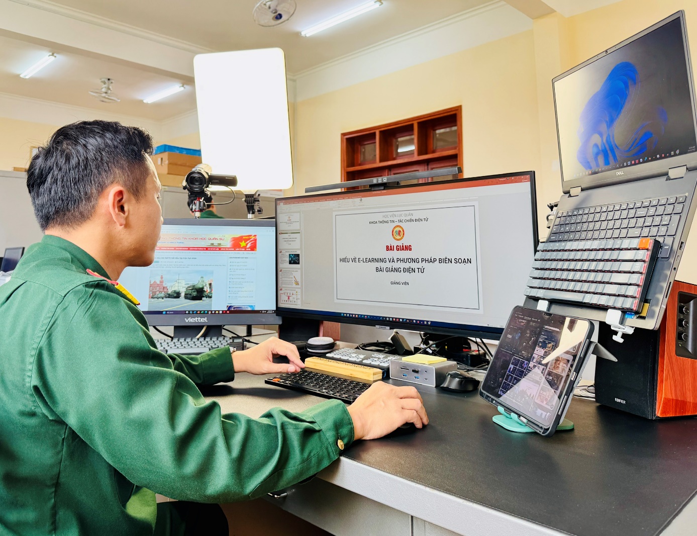 Việc chuẩn hóa và số hóa học liệu được xác định là nhiệm vụ trọng tâm trong năm học, nhằm tạo điều kiện để cán bộ, giảng viên và học viên có thể tiếp cận tri thức và tự học mọi lúc, mọi nơi. Hệ thống tài liệu giảng dạy, giáo trình, ngân hàng câu hỏi, đề thi từng bước được chuẩn hóa và lưu trữ trong kho dữ liệu số hóa tài liệu của khoa. Giảng viên được hướng dẫn phương pháp thiết kế bài giảng e-learning chuẩn SCORM, tích hợp âm thanh, video, câu hỏi tương tác để nâng cao hiệu quả học tập, thuận tiện trong đổi mới và vận dụng các phương pháp dạy học tích cực, hiện đại. Khoa cũng khuyến khích giảng viên sử dụng AI, công cụ Chatbot và phần mềm mô phỏng để nghiên cứu các cách thức xây dựng, thiết kế bài giảng điện tử bảo đảm sinh động, tạo hứng thú cho người học.