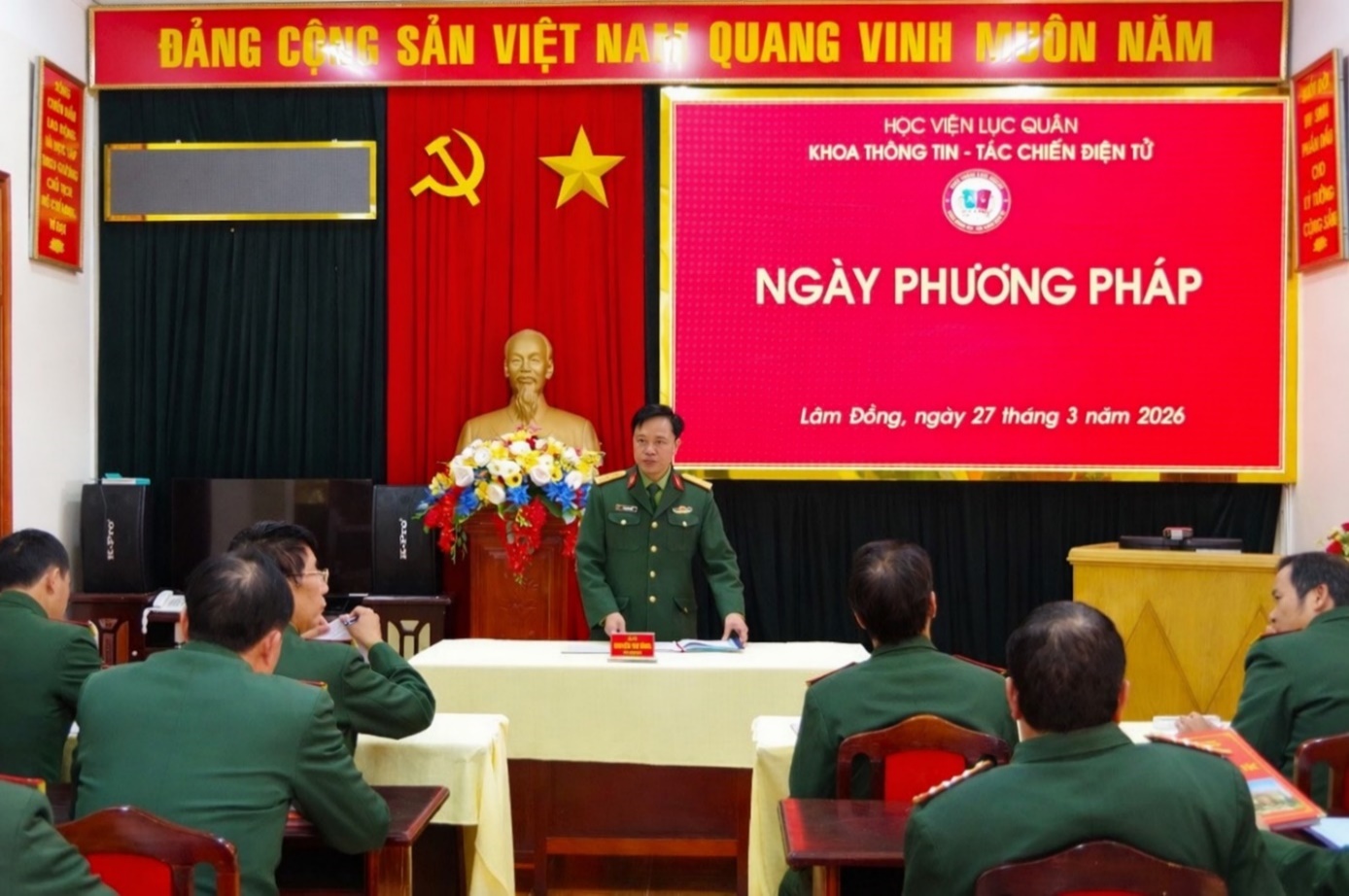 Thực hiện nghiêm Kế hoạch số 1030-KH/ĐU ngày 14 tháng 3 năm 2025 của Đảng uỷ Học viện Lục quân thực hiện Nghị quyết số 3488-NQ/QUTW ngày 29 tháng 01 năm 2025 về đột phá phát triển khoa học, công nghệ, đổi mới sáng tạo và chuyển đổi số trong Quân đội. Trong thời gian qua, Khoa Thông tin - tác chiến điện tử đã chú trọng triển khai các biện pháp nâng cao nhận thức và từng bước định hướng, mở rộng ứng dụng bài giảng điện tử, góp phần nâng cao chất lượng giáo dục - đào tạo, gắn với mục tiêu xây dựng nhà trường thông minh, đáp ứng yêu cầu nhiệm vụ trong tình hình mới.
