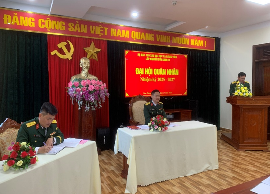 Đại hội quân nhân Lớp Nghiên cứu sinh 33 - Hệ 2, nhiệm kỳ 2025 - 2027 đã thành công tốt đẹp. Đây là bước phát triển quan trọng trong tiến trình xây dựng tập thể quân nhân và Hội đồng quân nhân vững mạnh.
