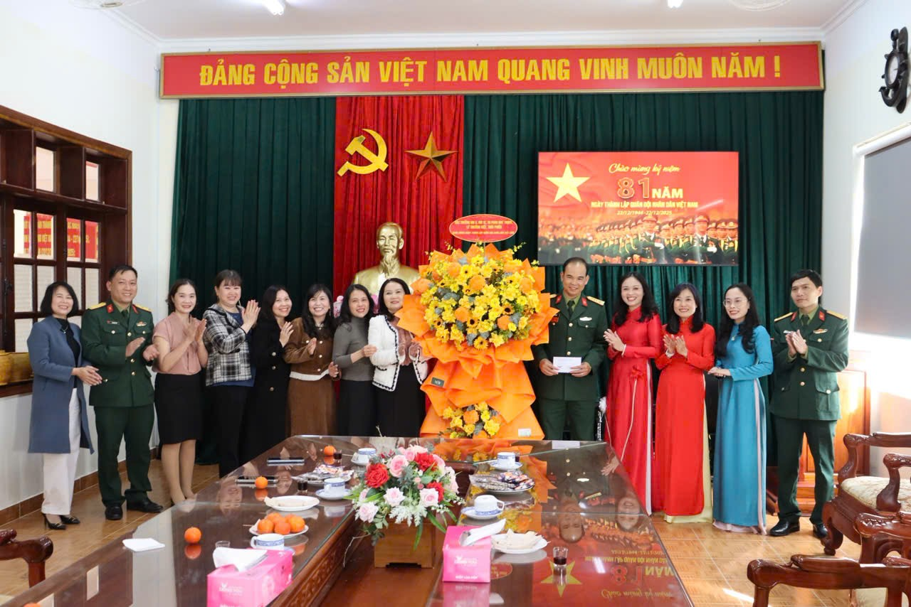 Đại diện các trường kết nghĩa trên địa bàn chúc mừng Phòng Hậu cần - Kỹ thuật, Học viện Lục quân nhân dịp 22/12