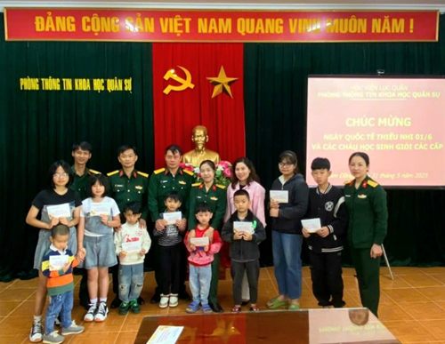 Sáng 31/5/2025, Phòng Thông tin khoa học quân sự - Học viện Lục quân đã tổ chức gặp mặt, tuyên dương và tặng quà cho các cháu học sinh giỏi, xuất sắc là con cán bộ, nhân viên của Phòng nhân Ngày Quốc tế thiếu nhi 01/6. Tham dự buổi gặp mặt có Cấp ủy, Chỉ huy Phòng cùng toàn thể cán bộ, nhân viên và các cháu thiếu nhi là con cán bộ, nhân viên của Phòng.