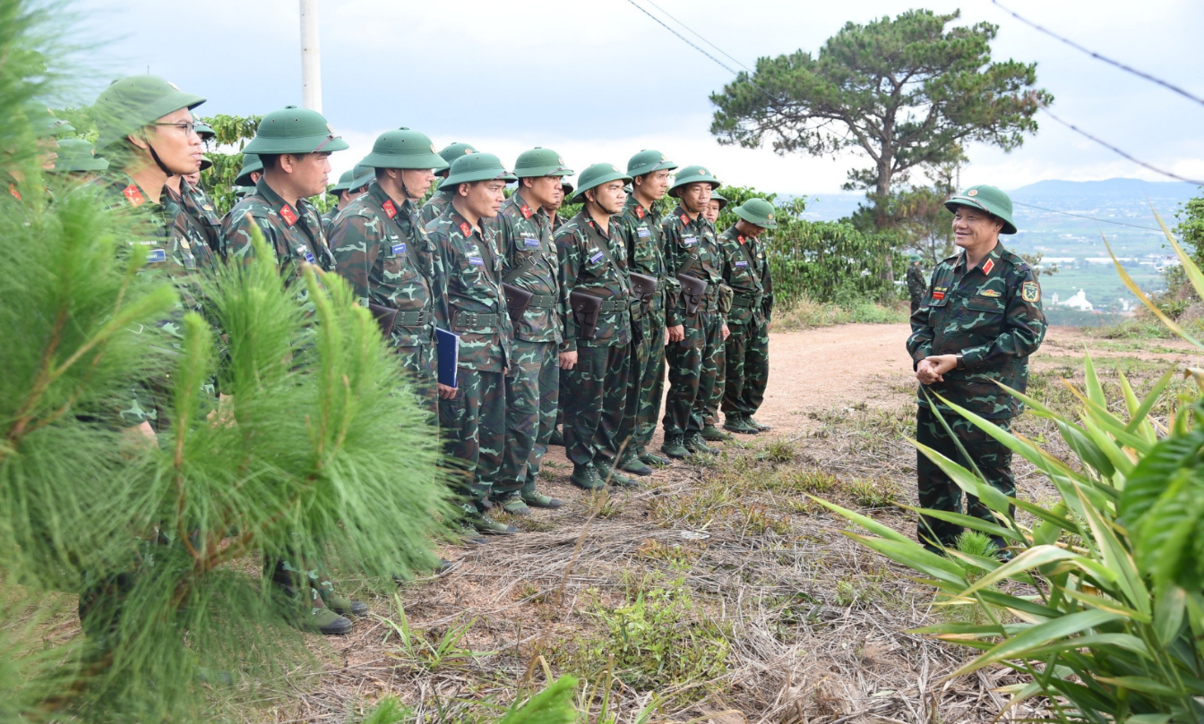 Trung tướng Đỗ Minh Xương - Giám đốc Học viện Lục quân thông qua tưởng định diễn tập tại thực địa