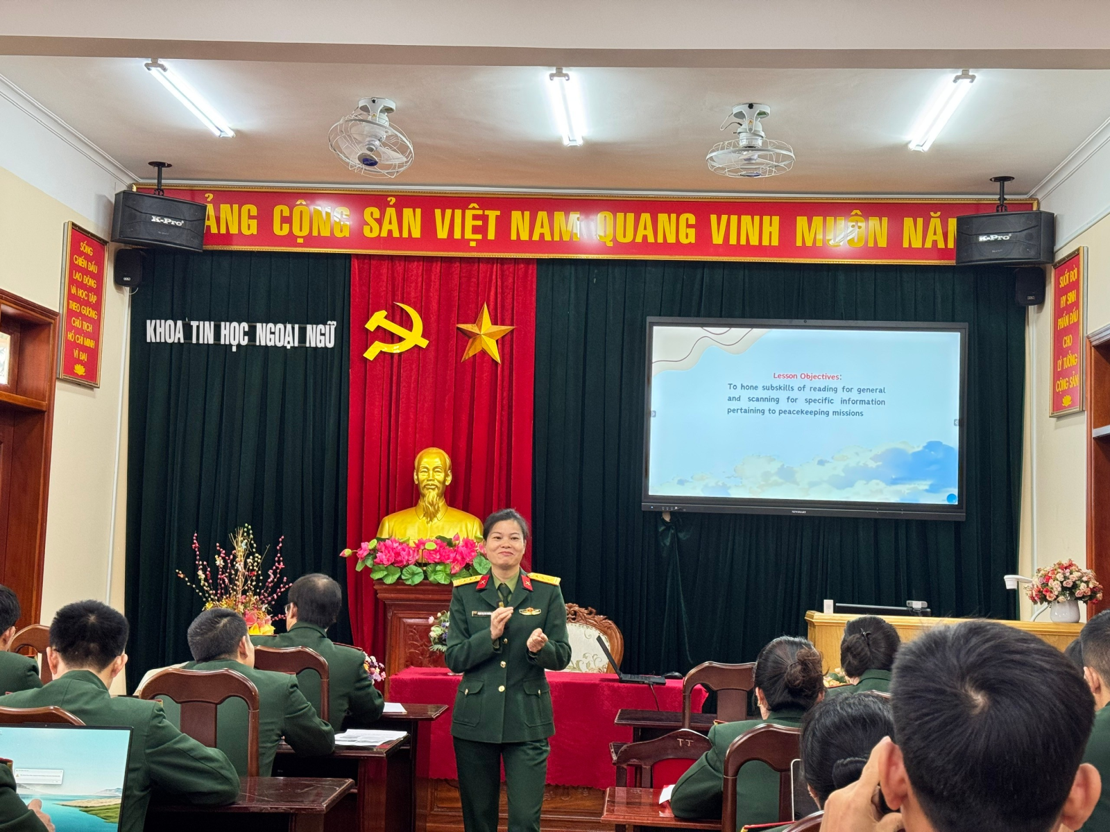 Góp phần vào nhiệm vụ đó có hình ảnh những cô giáo đứng trên bục giảng, những chị em là nhân viên thư viện, phục vụ, kế toán, văn thư… Những công việc thầm lặng ấy của phụ nữ Học viện Lục quân đã và đang góp phần rất quan trọng trong sự nghiệp trồng người của Đảng, Quân đội trong suốt 80 năm qua.