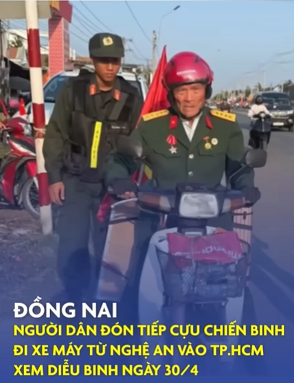 Ông Trần Văn Thanh (75 tuổi, ở Nghệ An) điều khiển xe máy vượt qua quãng đường gần 1300km để có mặt tại lễ diễu binh kỷ niệm 50 năm Ngày Giải phòng miền Nam, thống nhất đất nước (30/4/2025)