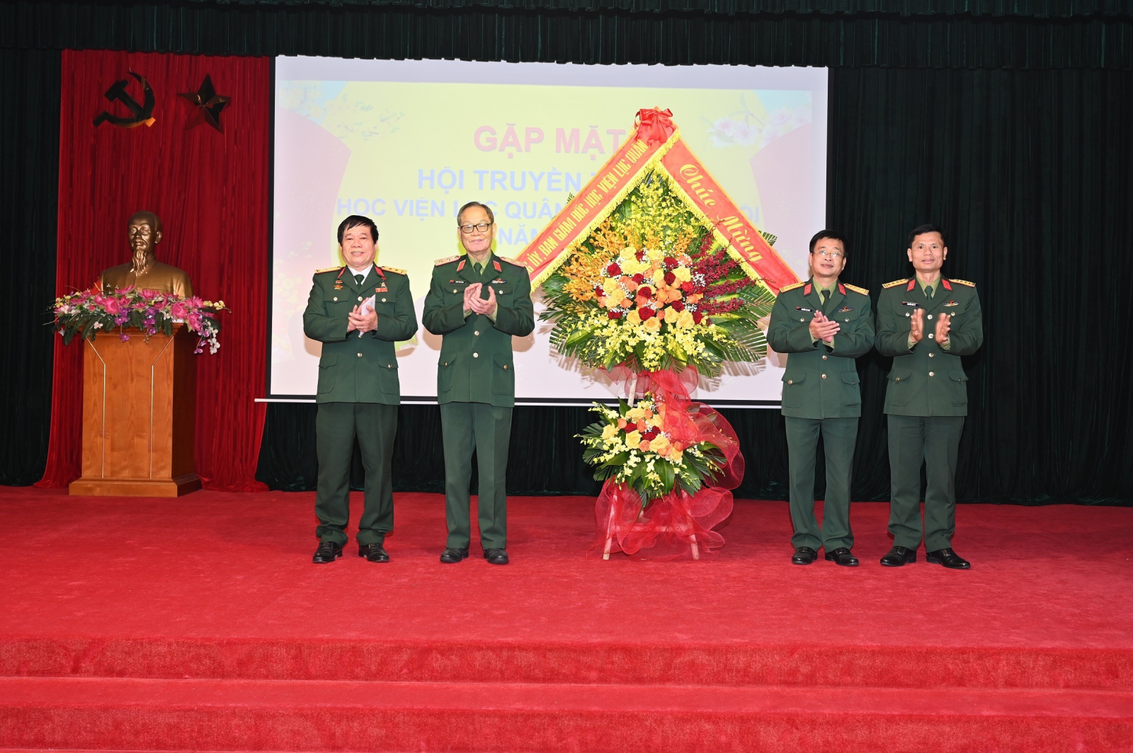 Đại diện Học viện Lục quân tham dự buổi gặp mặt có đồng chí Đại tá Nguyễn Bá Minh, Chủ nhiệm Chính trị Học viện và đồng chí Đại tá Nguyễn Văn Cố, Chủ nhiệm Khoa Pháo binh.