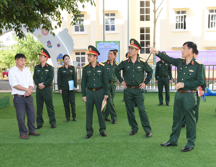 Trung tướng Đỗ Minh Xương - Giám đốc Học viện Lục quân kiểm tra xây dựng công trình “Khu vui chơi cho các cháu thiếu nhi” và một số nội dung khác tại nhà công vụ Học viện