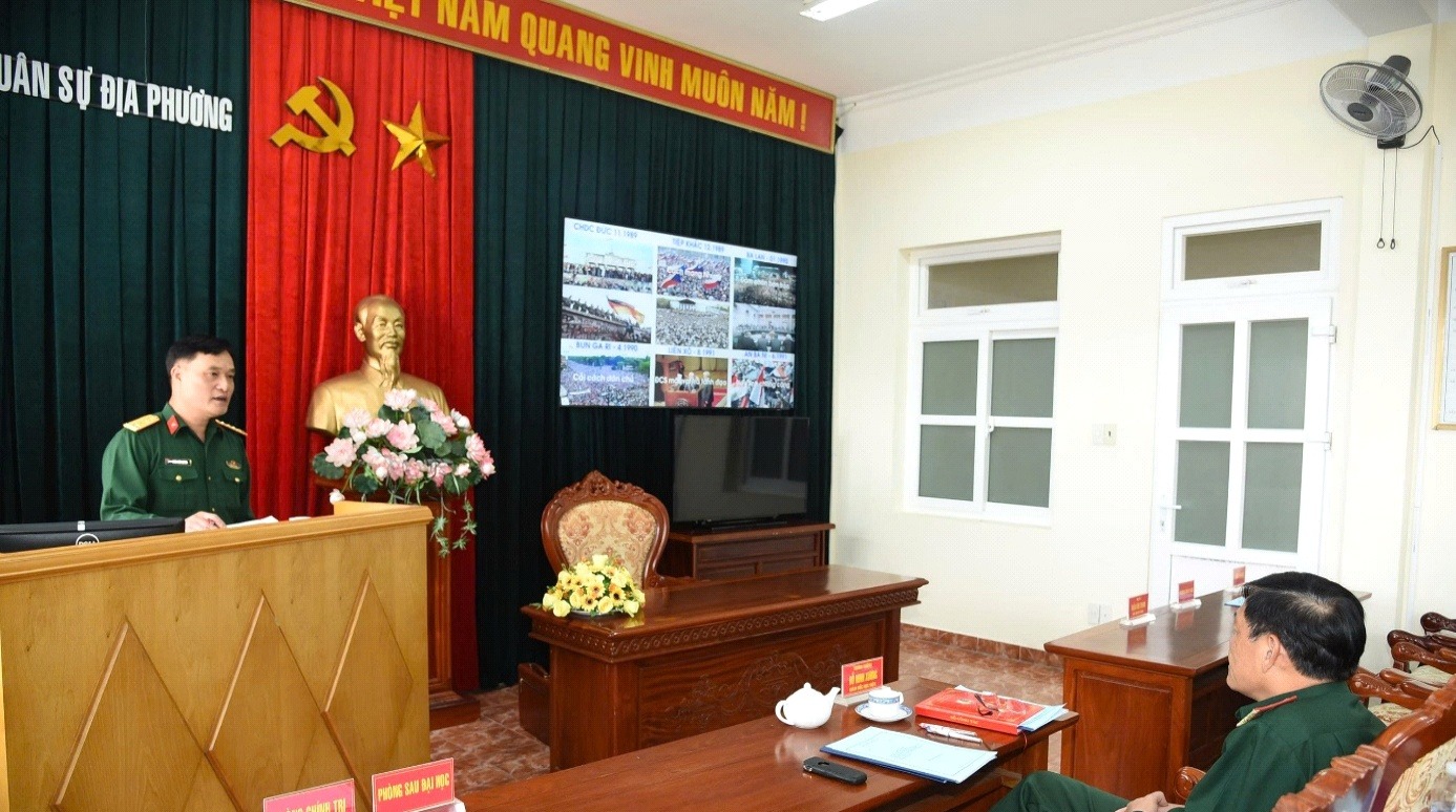 Thông qua tài liệu, tưởng định theo đúng kế hoạch trên giao. Đồng thời cập nhật luật, nghị định, thông tư mới về quốc phòng, quân sự vào trong giảng dạy; tăng cường viết các bài báo khoa học đăng trên tạp chí trong và ngoài Học viện.