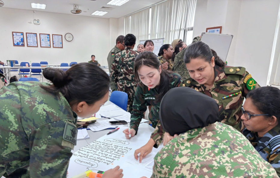 Bên cạnh đó, Đại úy Nguyễn Thị Nhật Hằng, hiện đang trong quá trình huấn luyện tại Cục Gìn giữ hòa bình Việt Nam để chuẩn bị tham gia Phái bộ chia sẻ: “Quyết tâm tham gia huấn luyện để chuẩn bị cho nhiệm vụ gìn giữ hòa bình Liên Hợp Quốc là một cột mốc quan trọng trong hành trình công tác của tôi. Đây không chỉ là cơ hội học tập, rèn luyện trong môi trường quốc tế chuyên nghiệp, mà còn là dịp để góp phần nhỏ bé của mình vào sứ mệnh cao cả, mang lại hòa bình và ổn định cho những vùng đất còn nhiều khó khăn. Tôi cảm thấy tự hào, trách nhiệm và tràn đầy quyết tâm để hoàn thành xuất sắc mọi nhiệm vụ được giao”. Theo Đại tá Mạc Đức Trọng, Phó Cục trưởng Cục Gìn giữ hòa bình Việt Nam: “Các đồng chí là giảng viên nữ khi tham gia lực lượng gìn giữ hòa bình có nhiều thế mạnh, nổi bật là trình độ ngoại ngữ, kỹ năng sư phạm và khả năng học hỏi nhanh. Chính vì vậy, dù đảm nhiệm nhiệm vụ nào tại Phái bộ, từ huấn luyện, phân tích thông tin đến hậu cần, các đồng chí đều hoàn thành xuất sắc nhiệm vụ”.