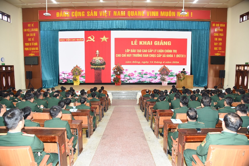 Sáng ngày 15/4/2026, tại Hội trường Hoàng Văn Thái, Học viện Lục quân long trọng tổ chức Lễ khai giảng đào tạo cao cấp lý luận chính trị Khóa 1 đối với Chỉ huy trưởng Ban Chỉ huy quân sự cấp xã. Đây là sự kiện có ý nghĩa đặc biệt quan trọng, đánh dấu bước phát triển mới trong công tác đào tạo, bồi dưỡng đội ngũ cán bộ quân sự cơ sở, đáp ứng yêu cầu nhiệm vụ xây dựng và bảo vệ Tổ quốc trong tình hình mới.