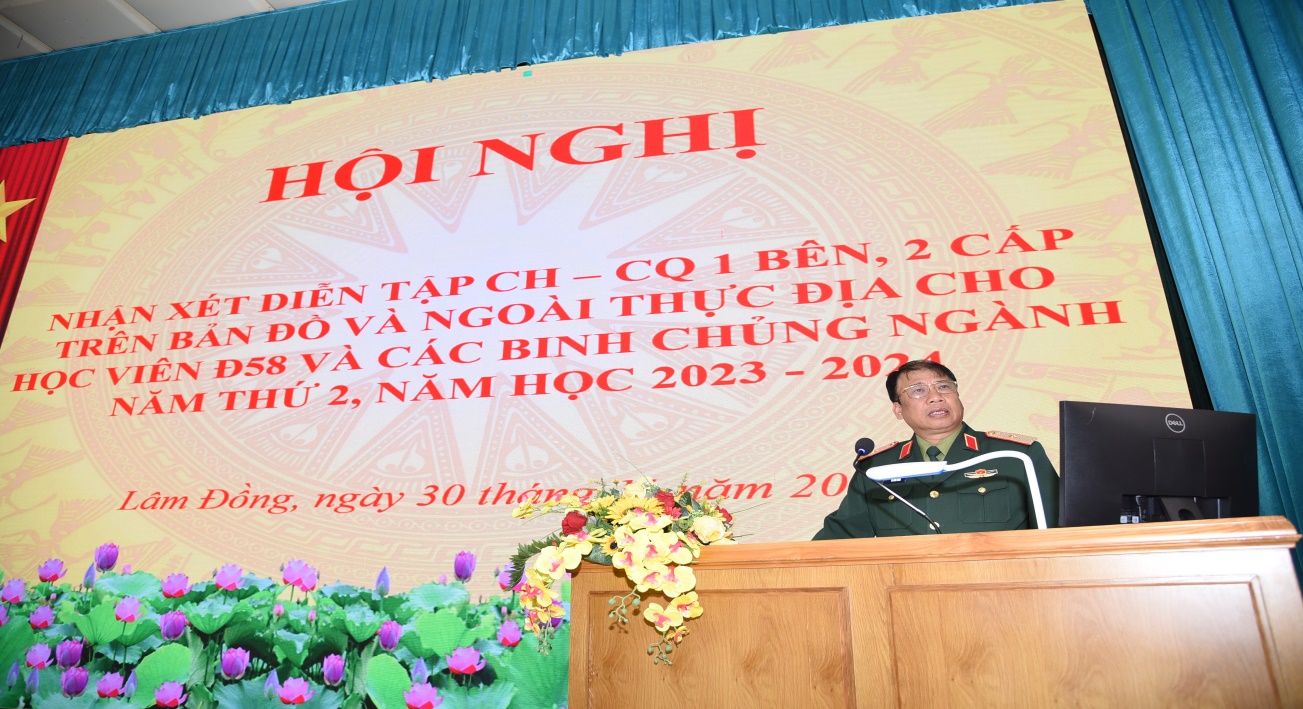 Học viện Lục quân nhận xét diễn tập chỉ huy cơ quan 1 bên, 2 cấp trên bản đồ và ngoài thực địa cho học viên Đ58 và các binh chủng ngành năm thứ hai, năm học 2023-2024
