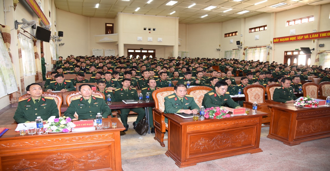 Đồng chí Thiếu tướng, TS Đỗ Anh Tuấn, Phó Giám đốc Học viện Lục quân phát biểu trong hội nghị
