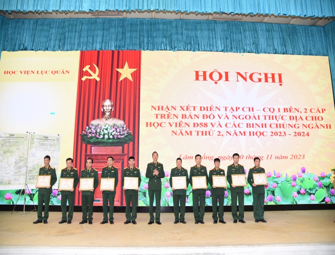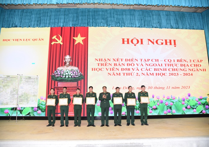 Tại hội nghị, ghi nhận thành tích của các tập thể, cá nhân, Giám đốc Học viện đã tặng thưởng Giấy khen cho 08 tập thể và 37 cá nhân có thành tích tốt trong thực hiện nhiệm vụ diễn tập chỉ huy cơ quan 1 bên, 2 cấp trên bản đồ và ngoài thực địa cho học viên Đ58 và các binh chủng ngành năm thứ hai, năm học 2023-2024./.