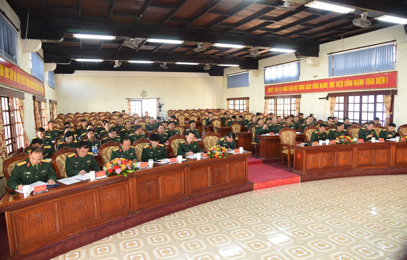 Tại Hội nghị, được sự ủy quyền của Ban Giám đốc Học viện, đồng chí Thượng tá Nguyễn Đình Hiếu, Chủ nhiệm Hậu cần - Kỹ thuật báo cáo kết quả thực hiện nhiệm vụ công tác hậu cần, kỹ thuật năm 2025; phương hướng, nhiệm vụ năm 2026. Trên cơ sở đó, đồng chí Thiếu tướng Tống Phú đã duy trì Hội nghị thảo luận. Các đại biểu đã đánh giá cao kết quả công tác hậu cần, kỹ thuật năm 2025 của Học viện; đồng thời chỉ rõ hạn chế và nguyên nhân trong lãnh đạo, chỉ đạo tổ chức thực hiện nhiệm vụ công tác hậu cần, kỹ thuật.