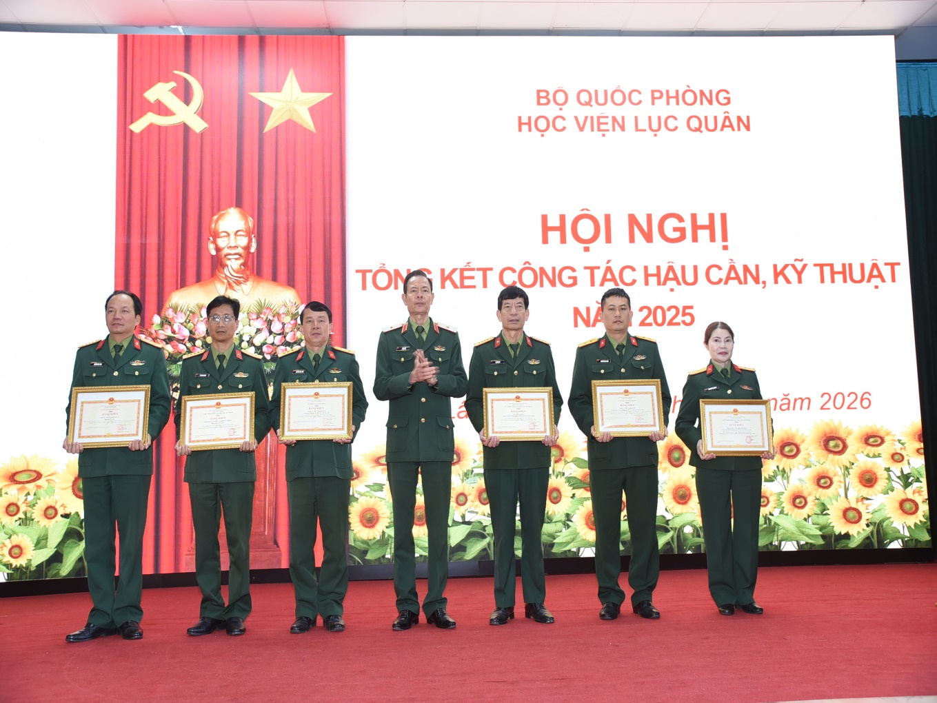 Tại Hội nghị thừa ủy quyền của Bộ Quốc phòng, Học viện đã trao Bằng khen của Bộ trưởng Bộ Quốc phòng cho 02 tập thể, 04 cá nhân vì đã có thành tích xuất sắc trong thực hiện Cuộc vận động “Quản lý, khai thác vũ khí trang bị kỹ thuật tốt, bền, an toàn, tiết kiệm và an toàn giao thông” giai đoạn 2019-2024; phong trào thi đua “Chung tay xóa nhà tạm, nhà dột nát trên phạm vi cả nước trong năm 2025”; phong trào thi đua “Xây dựng đơn vị nuôi quân giỏi, quản lý quân nhu tốt giai đoạn 2020-2025”.
