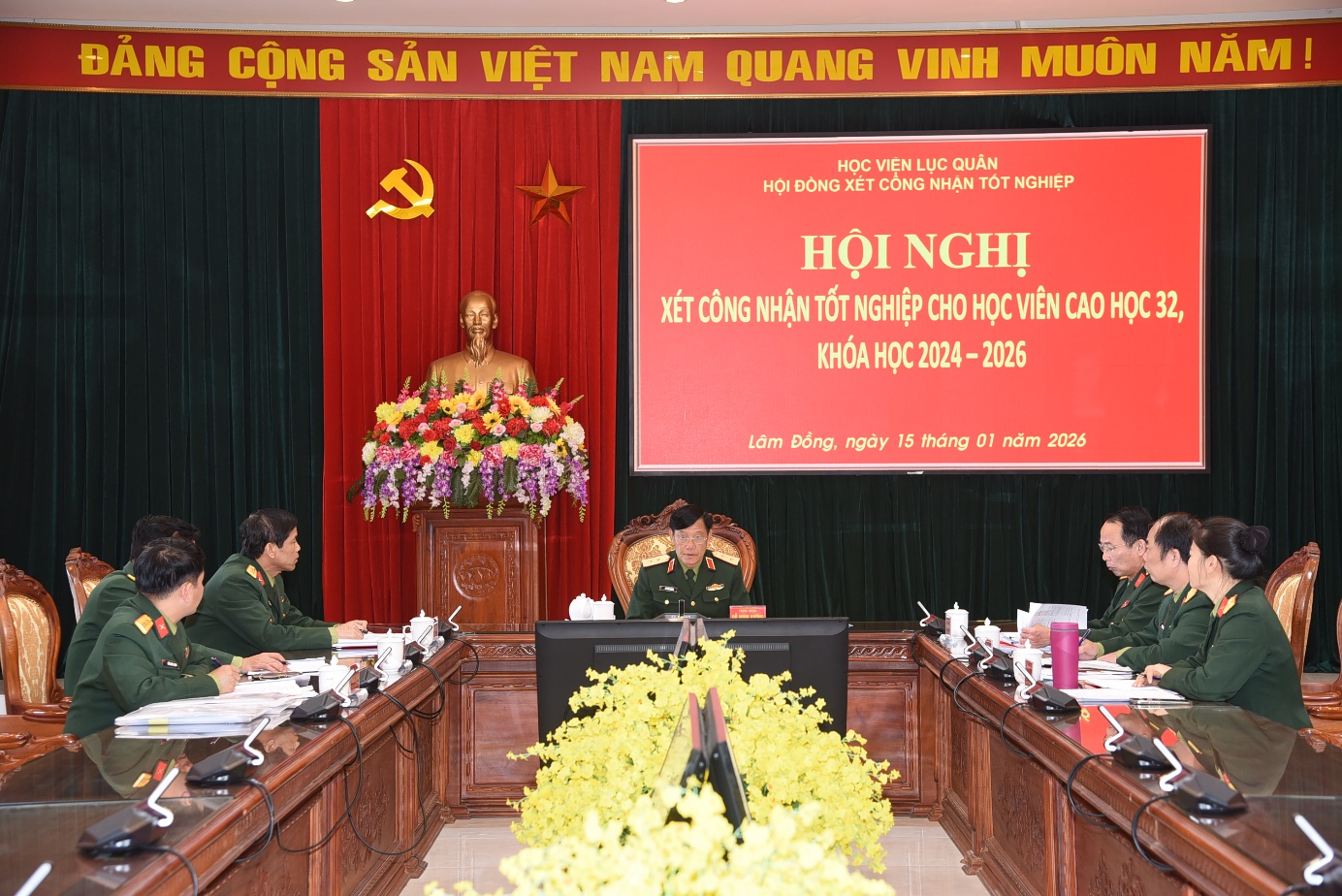 Thực hiện Kế hoạch số 03/KH-SĐH ngày 06 tháng 01 năm 2026 của Phòng Sau đại học đã được Giám đốc Học viện phê duyệt, sáng ngày 15 tháng 01 năm 2026, Học viện tổ chức họp Hội đồng xét, công nhận tốt nghiệp cho học viên cao học Khóa 32.