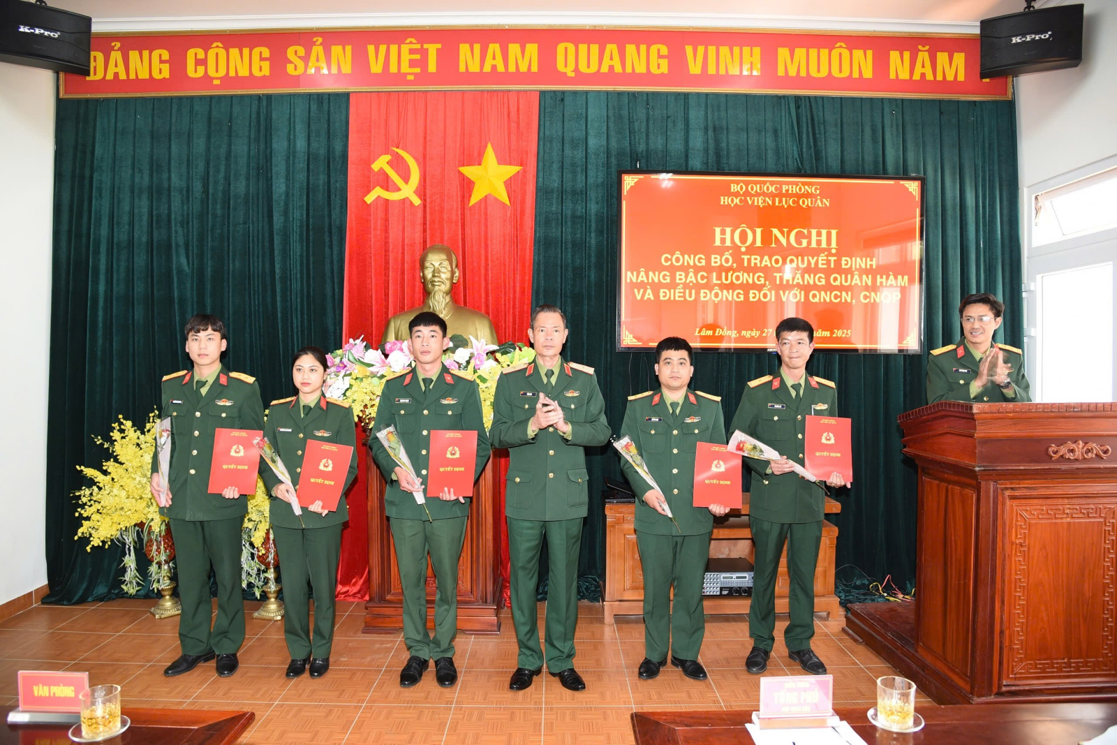 Ngày 27/02/2025, Học viện Lục quân tổ chức Hội nghị trao quyết định nâng bậc lương thường xuyên và thăng quân hàm, điều động đối với quân nhân chuyên nghiệp, công nhân quốc phòng.