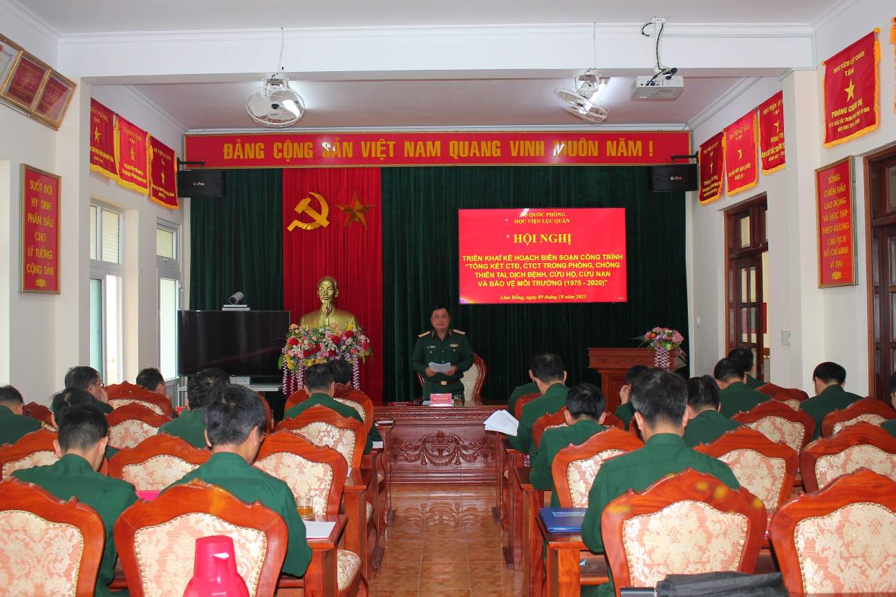 Học viện tổ chức triển khai kế hoạch biên soạn công trình “Tổng kết công tác đảng, công tác chính trị của Học viện Lục quân trong thực hiện nhiệm vụ phòng, chống thiên tai, dịch bệnh, cứu hộ, cứu nạn và bảo vệ môi trường (1975 - 2020)”