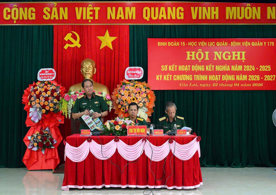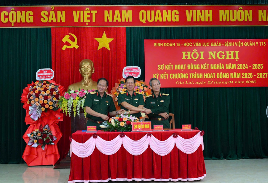 Ngày 22/4/2026, tại Gia Lai, Bộ Tư lệnh Binh đoàn 15 tổ chức Hội nghị sơ kết hoạt động kết nghĩa giữa Binh đoàn 15, Học viện Lục quân và Bệnh viện Quân y 175 giai đoạn 2024-2025, đồng thời xác định phương hướng, ký kết chương trình phối hợp giai đoạn 2026-2027.
