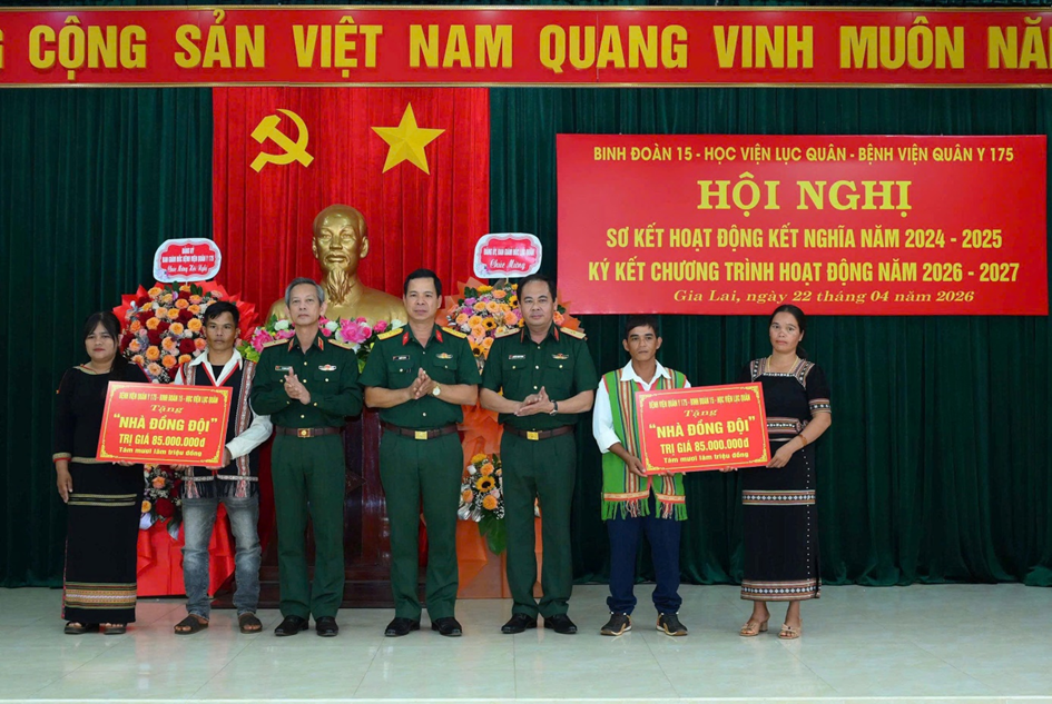 Cũng tại hội nghị, ba đơn vị gồm Binh đoàn 15, Học viện Lục quân và Bệnh viện Quân y 175 đã trao số tiền 170 triệu đồng hỗ trợ xây dựng 02 “Nhà đồng đội” cho 02 hộ gia đình là người lao động có hoàn cảnh khó khăn về nhà ở thuộc Binh đoàn 15. Đây là hoạt động có ý nghĩa thiết thực, thể hiện tinh thần tương thân tương ái, trách nhiệm và sự quan tâm sâu sắc của các đơn vị đối với đời sống của cán bộ, nhân viên, người lao động; qua đó góp phần giúp các gia đình ổn định cuộc sống, yên tâm công tác, gắn bó lâu dài với đơn vị.