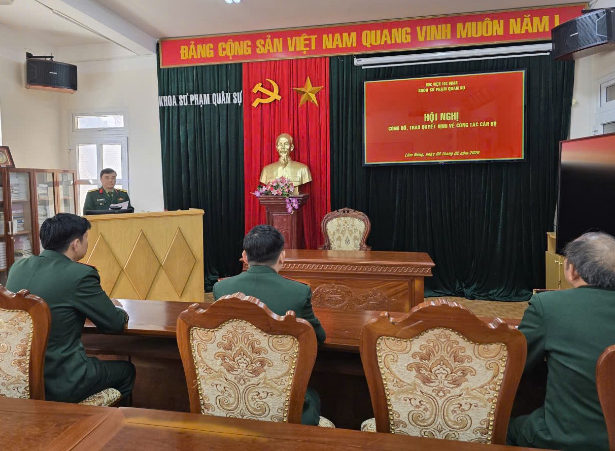 Sáng ngày 06/02/2026 Khoa Sư phạm quân sự tổ chức Hội nghị công bố, trao quyết định điều động cán bộ.