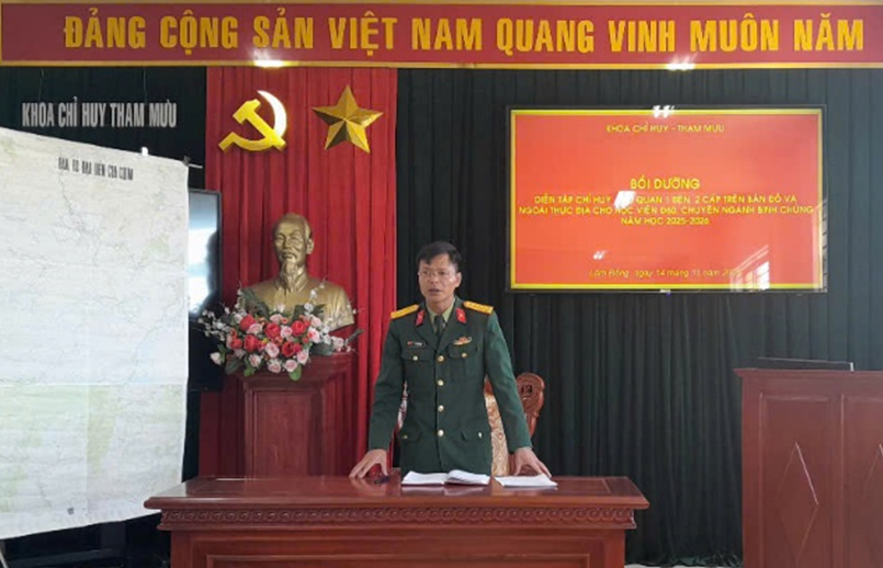 Chấp hành Chỉ thị số 1538/CT-HV ngày 05/8/2025 của Giám đốc Học viện về việc “Tổ chức luyện tập, diễn tập cho các đối tượng học viên đào tạo theo chức vụ năm học 2025 - 2026”. Ngày 14/11/2025, Khoa Chỉ huy - Tham mưu đã tiến hành bồi dưỡng cho giảng viên tham gia đóng vai, đạo diễn diễn tập CH-CQ 1 bên, 2 cấp trên bản đồ và ngoài thực địa học viên Đ60, binh chủng năm thứ hai.