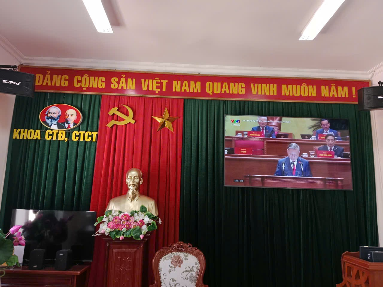 Khoa Công tác đảng, công tác chính trị tổ chức theo dõi truyền hình trực tiếp khai mạc Đại hội đại biểu toàn quốc lần thứ XIV của Đảng