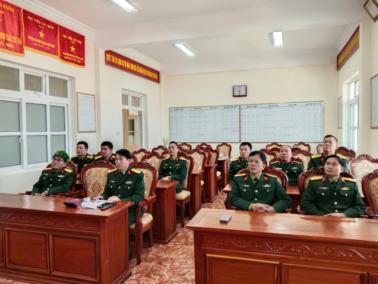 Thực hiện Điện chỉ đạo của Cục Tuyên huấn/Tổng cục Chính trị; sự hướng dẫn của Phòng Chính trị/Học viện Lục quân và xuất phát từ tinh thần trách nhiệm chính trị, ý thức tự giác của cán bộ, đảng viên đối với sự kiện chính trị trọng đại của đất nước, vào lúc 08 giờ 00 phút, ngày 20 tháng 01 năm 2026, tại phòng phương pháp, Khoa Công tác đảng, công tác chính trị đã tổ chức cho cán bộ, đảng viên trong đơn vị theo dõi truyền hình trực tiếp Lễ khai mạc Đại hội đại biểu toàn quốc lần thứ XIV của Đảng Cộng sản Việt Nam theo đúng quy định và kế hoạch.