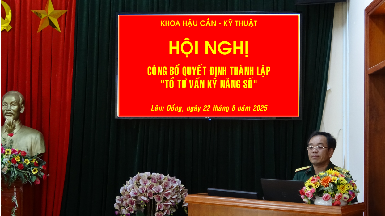 Căn cứ hướng dẫn của Học viện Lục quân về việc thành lập Tổ tư vấn kỹ năng số trong toàn Học viện, tháng 8/2025, Khoa Hậu cần - Kỹ thuật đã ban hành Quyết định thành lập Tổ tư vấn kỹ năng số.