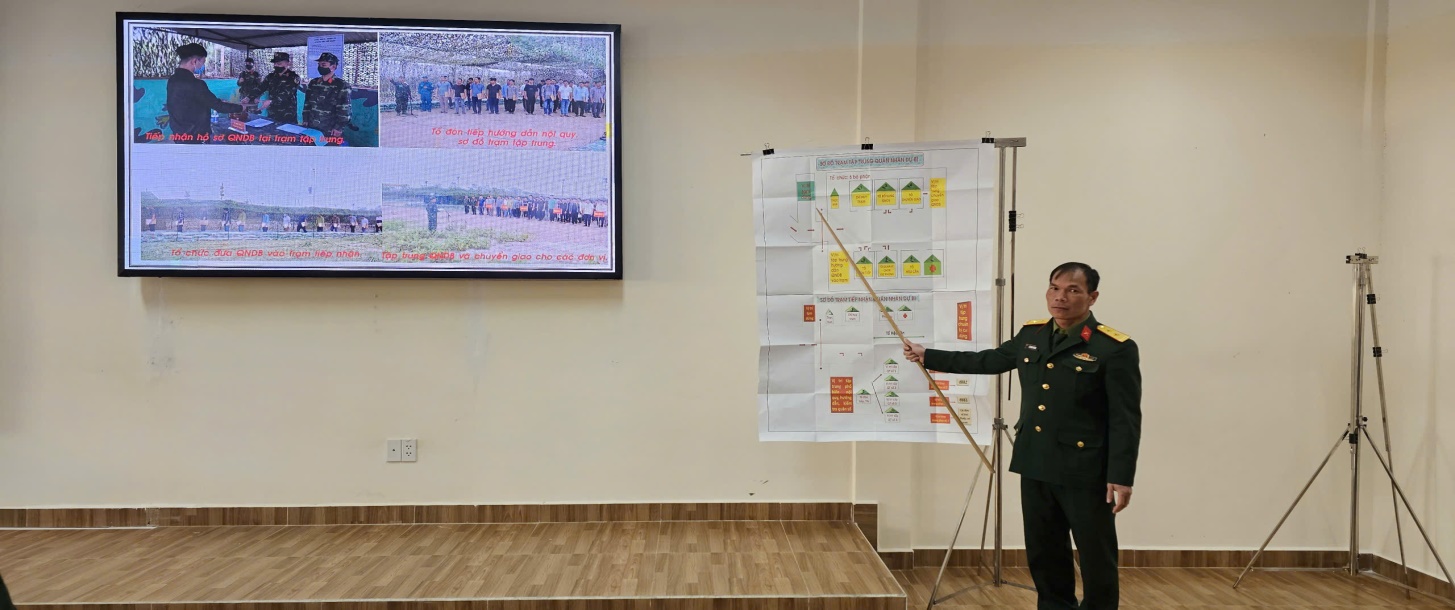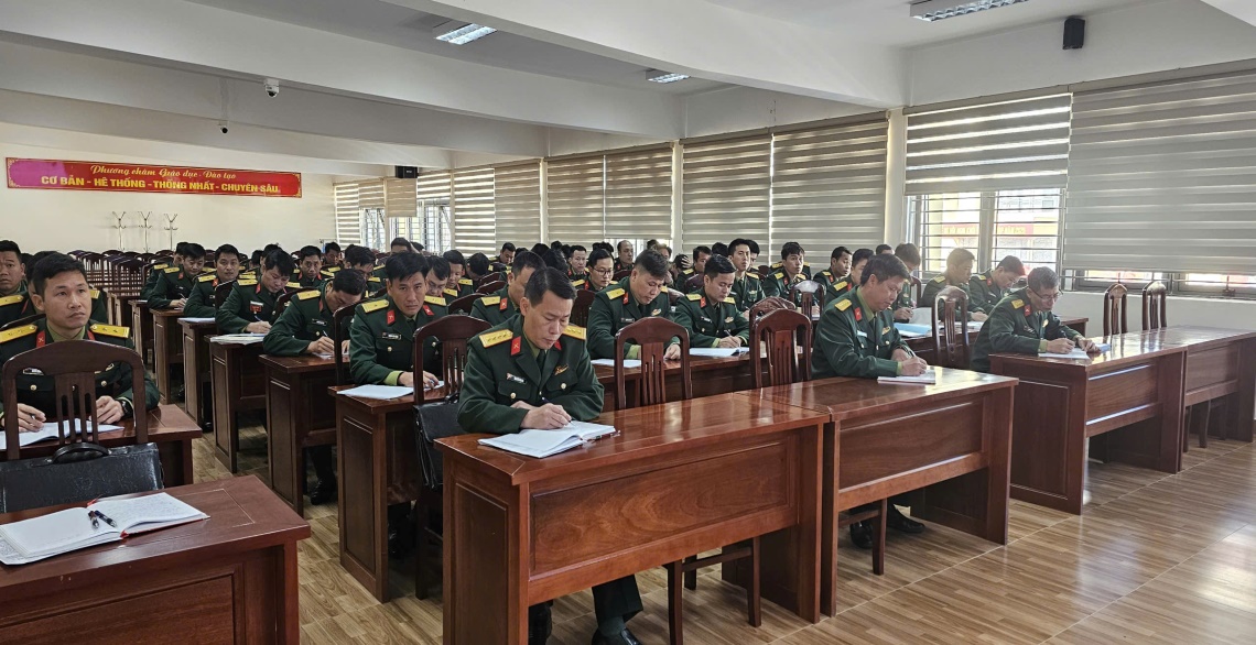 Trong quá trình giảng dạy, giảng viên dẫn dắt theo hướng phát huy tính chủ động, sáng tạo của học viên; kết hợp hài hòa giữa thuyết trình, nêu vấn đề gợi mở và xử lý các tình huống sát với thực tiễn công tác ở cơ sở. Nội dung bài giảng tập trung làm rõ chức năng, nhiệm vụ, mối quan hệ phối hợp và quy trình tổ chức hoạt động của trạm tập trung, trạm tiếp nhận quân nhân dự bị, qua đó giúp học viên hình thành tư duy hệ thống, nâng cao năng lực vận dụng kiến thức vào công tác tham mưu, tổ chức và chỉ huy tại đơn vị. Phương pháp điều hành lớp học được giảng viên thực hiện chặt chẽ, khoa học, phát huy tính tích cực, tự giác và tinh thần trách nhiệm của học viên trong tiếp thu, lĩnh hội và xử lý thông tin. Trong suốt giờ học, học viên chấp hành nghiêm lễ tiết, tác phong quân nhân; tập trung nghe giảng, tích cực ghi chép và chủ động tham gia thảo luận theo định hướng của giảng viên, góp phần xây dựng không khí học tập nghiêm túc, dân chủ và hiệu quả.