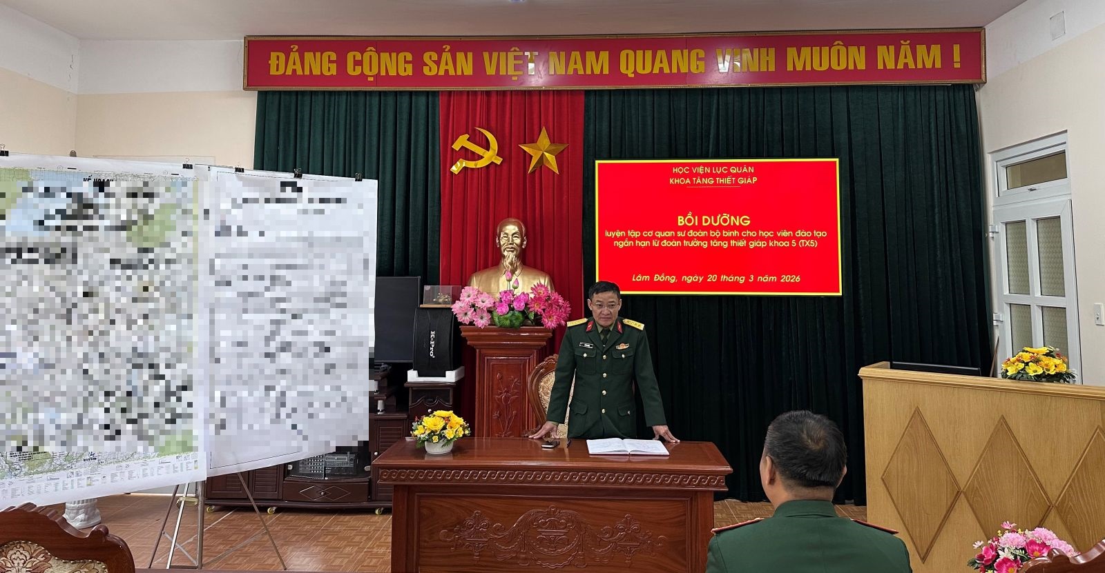 Thực hiện Chỉ thị số 1538/CT-HV ngày 05 tháng 8 năm 2025 của Giám đốc Học viện về tổ chức luyện tập, diễn tập cho các đối tượng học viên đào tạo theo chức vụ năm học 2025-2026. Trong đó, có luyện tập chỉ huy cơ quan sư đoàn bộ binh (cơ quan đại diện tăng thiết giáp sư đoàn bộ binh) cho học viên đào tạo ngắn hạn lữ đoàn trưởng tăng thiết giáp khóa 5 (TX5).