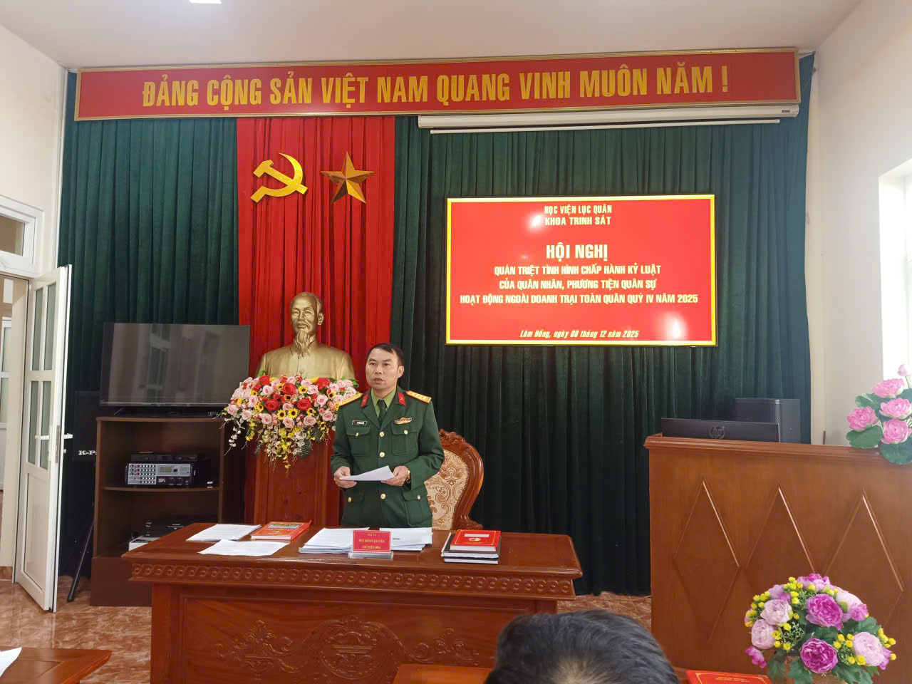 Trong bối cảnh nhiệm vụ bảo vệ Tổ quốc ngày càng cao, yêu cầu xây dựng Quân đội nhân dân Việt Nam “cách mạng, chính quy, tinh nhuệ, hiện đại” đặt ra những đòi hỏi mới, toàn diện hơn đối với mỗi cơ quan, đơn vị. Đối với Học viện Lục quân nói chung và Khoa Trinh sát nói riêng, việc tăng cường quản lý tư tưởng, giữ vững kỷ luật, xây dựng tác phong mẫu mực cho đội ngũ cán bộ, giảng viên không chỉ là nhiệm vụ thường xuyên mà còn là yếu tố quyết định để nâng cao chất lượng giáo dục, đào tạo, nghiên cứu khoa học.