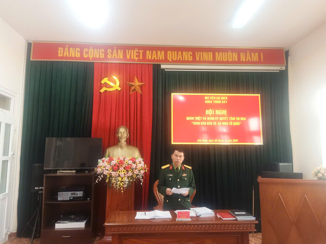 Thực hiện Hướng dẫn số 237/HD-HV ngày 28/01/2026 của Học viện Lục quân về việc tổ chức quán triệt Phong trào thi đua “Toàn dân bảo vệ an ninh Tổ quốc” trong Học viện. Chiều ngày 30/01/2026, Khoa Trinh sát, Học viện Lục quân đã tổ chức Hội nghị quán triệt, đăng ký thực hiện Phong trào thi đua “Toàn dân bảo vệ an ninh Tổ quốc”. Hội nghị do đồng chí Đại tá, Tiến sĩ Bùi Đình Quyền, Chủ nhiệm Khoa chủ trì, cùng với sự tham gia của toàn thể cán bộ, giảng viên trong Khoa.