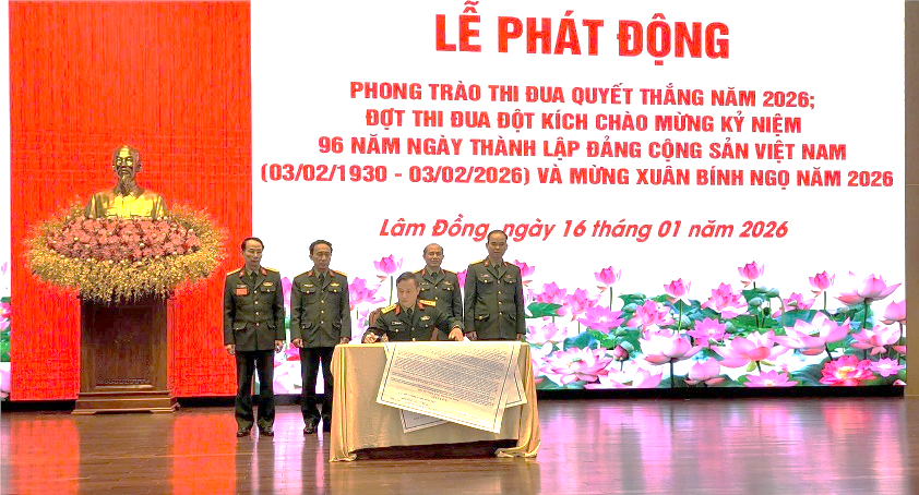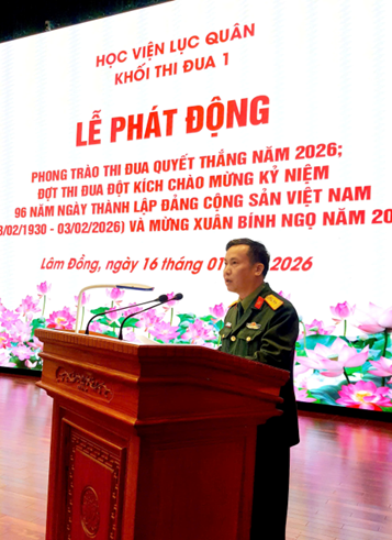 Sáng ngày 16/01/2026, tại Hội trường 7/7 Khối Thi đua 1 gồm các cơ quan: Phòng Khoa học quân sự, Văn phòng, Phòng Chính trị, Phòng Đào tạo và Phòng Hậu cần - Kỹ thuật đã tổ chức Lễ phát động, ký kết phong trào thi đua Quyết thắng năm 2026; đợt thi đua đột kích chào mừng kỷ niệm 96 năm ngày Thành lập Đảng Cộng sản Việt Nam (03/02/1930 - 03/02/2026) và mừng Xuân Bính Ngọ 2026.