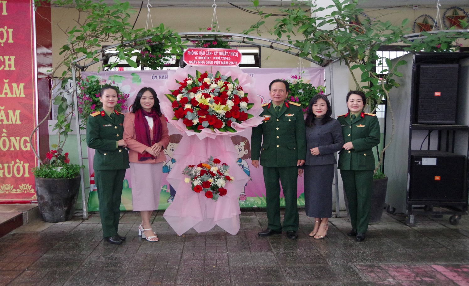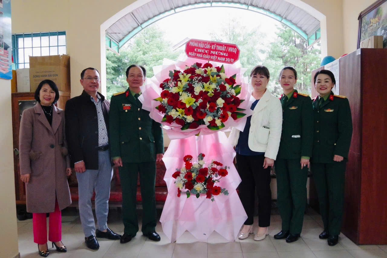 Theo đó, ngày 19/11/2025, Đoàn công tác của Phòng Hậu cần - Kỹ thuật do Đại tá Nguyễn Đức Tuấn - Phó Chủ nhiệm Hậu cần - Kỹ thuật làm trưởng đoàn đã đi thăm và chúc mừng Ngày Nhà giáo Việt Nam tại Trường Tiểu học cơ sở Thái Phiên, Trường Tiểu học cơ sở Lý Thường Kiệt, Trường Tiểu học cơ sở Phan Như Thạch, Trường Mầm non 9 và Trường Mầm non Thái Phiên. Tại các trường, Phòng đã gửi những lẵng hoa tươi thắm và quà chúc mừng; đồng thời đề cao những đóng góp to lớn của đội ngũ nhà giáo trong sự nghiệp “trồng người”, góp phần nâng cao dân trí và xây dựng môi trường giáo dục lành mạnh cho thế hệ trẻ. Nhân dịp này, đồng chí đã gửi lời chúc các thầy cô sức khỏe, hạnh phúc, luôn giữ vững tâm huyết và bản lĩnh nghề nghiệp, tiếp tục cống hiến cho sự nghiệp giáo dục đào tạo, góp phần xây dựng quê hương, đất nước ngày càng giàu đẹp hơn.