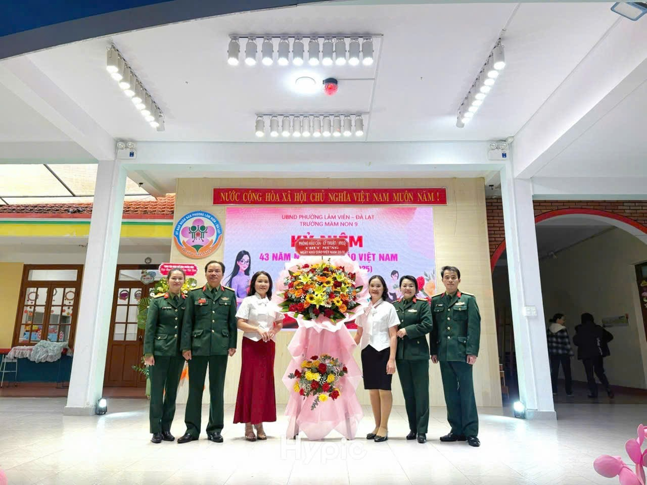Đoàn công tác của Phòng Hậu cần - Kỹ thuật tặng hoa chúc mừng tại Trường Mầm non 9