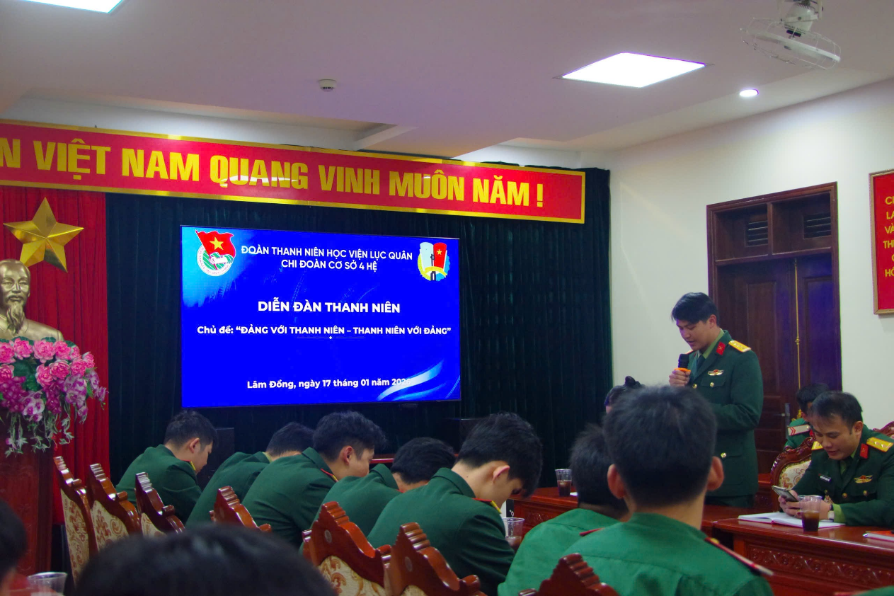Thiết thực chào mừng Đại hội đại biểu toàn quốc lần thứ XIV của Đảng và kỷ niệm 96 năm Ngày thành lập Đảng Cộng sản Việt Nam (03/02/1930 – 03/02/2026), trong ngày 17/01/2026, các tổ chức Đoàn thuộc Học viện Lục quân đã đồng loạt tổ chức Diễn đàn Thanh niên với chủ đề “Đảng với Thanh niên – Thanh niên với Đảng”.